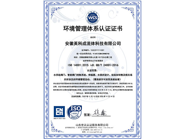 • 環(huán)境管理體系認(rèn)證證書